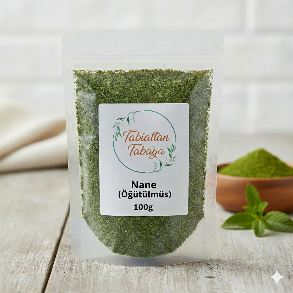 Doğanın en ferahlatıcı hediyesi, en saf haliyle sofralarınıza konuk oluyor. Tabiattan Tabağa Kuru Nane, yüksek yaylaların tertemiz havasında yetişen, aroması en keskin nane yapraklarının özenle seçilip kurutulmasıyla elde edilir. Paketi açtığınız anda yayılan o keskin ve taze koku, kalitemizin imzasıdır.